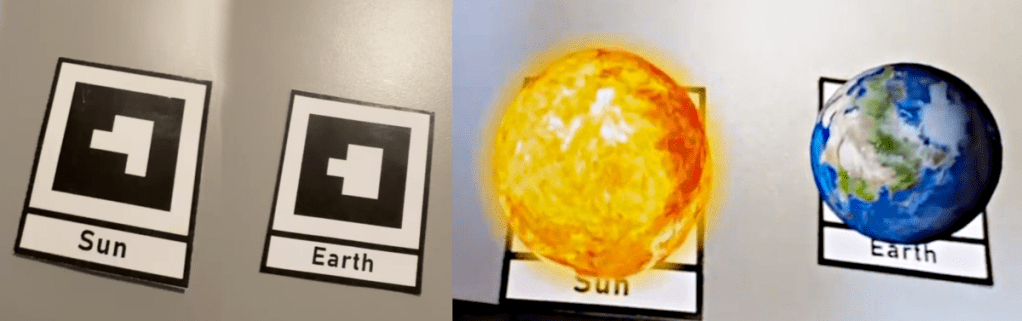 Augmented Reality (AR) blends digital content with the physical world, allowing virtual objects to appear as if they occupy real space. At the Innovation Center, we develop AR applications using a marker-based system: simple black-and-white printed patterns (“AR markers”) that the app can recognize. When viewed through any camera-enabled device, AR markers are replaced with virtual 2D or 3D objects that remain anchored in place, even as the viewer moves around them.